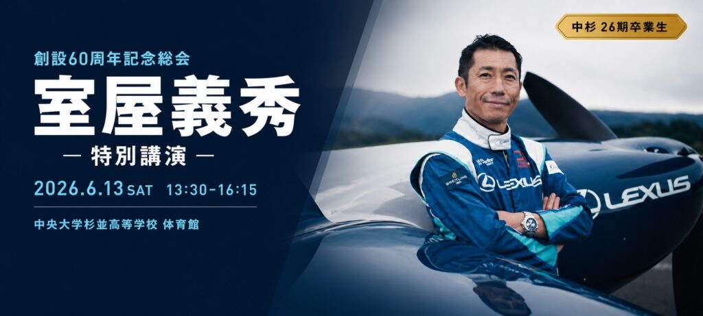 創設60周年記念総会の特別企画として、中央大学杉並高等学校の26期卒業生であり、エアレース・パイロットとして世界的に活躍されている室屋義秀氏をお迎えし、総会の議案審議終了後に、ご講演をいただきます。