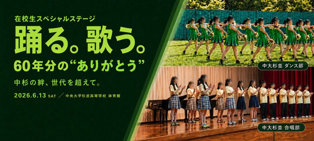 日時:令和8年6月13日(土)13:30〜16:15 会場:中央大学杉並高等学校 体育館